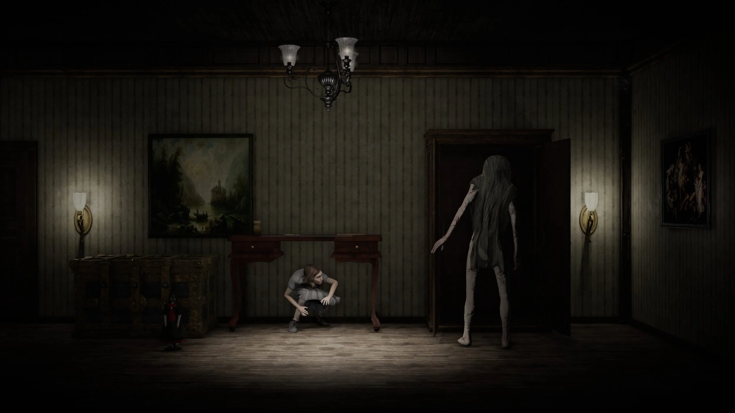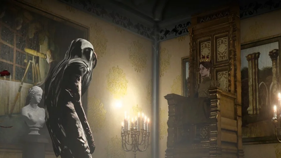 Setting 9/10Put plainly, Withering Rooms looks and sounds gorgeous across its varied and expansive settings. Mostyn House stands out as a major set piece, full of exquisite paintings, statues, and furniture which morph into unsettling and sometimes horrific backdrops, both as the player becomes cursed and as the game progresses.